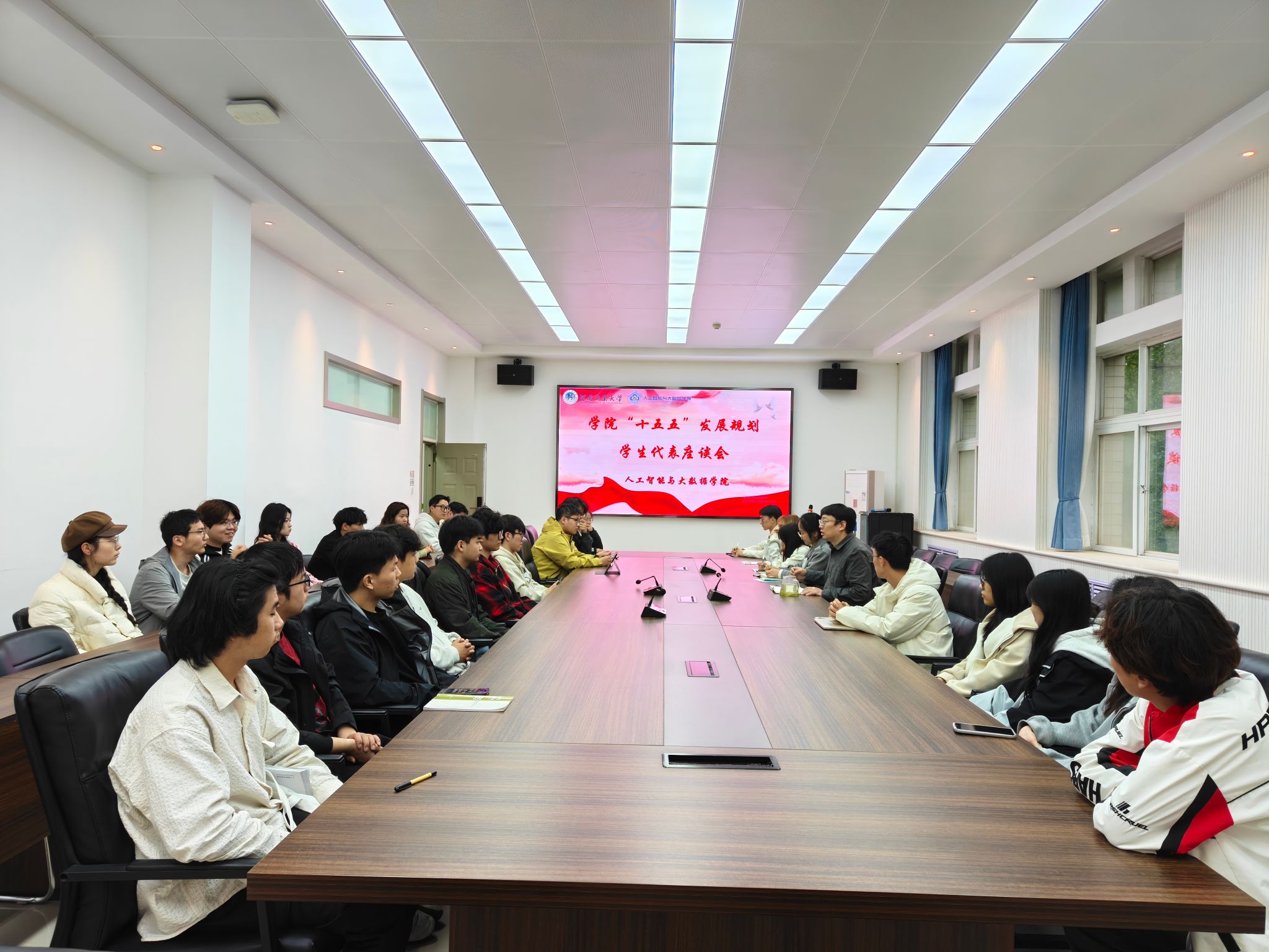 在6369会议室召开学院“十五五”规划学生座谈会。学院党委副书记赵志洋,学工办副主任齐卫红、辅导员张立鹏参加座谈,与本硕各年级学生代表、学生会骨干共话学院发展与学生成长。