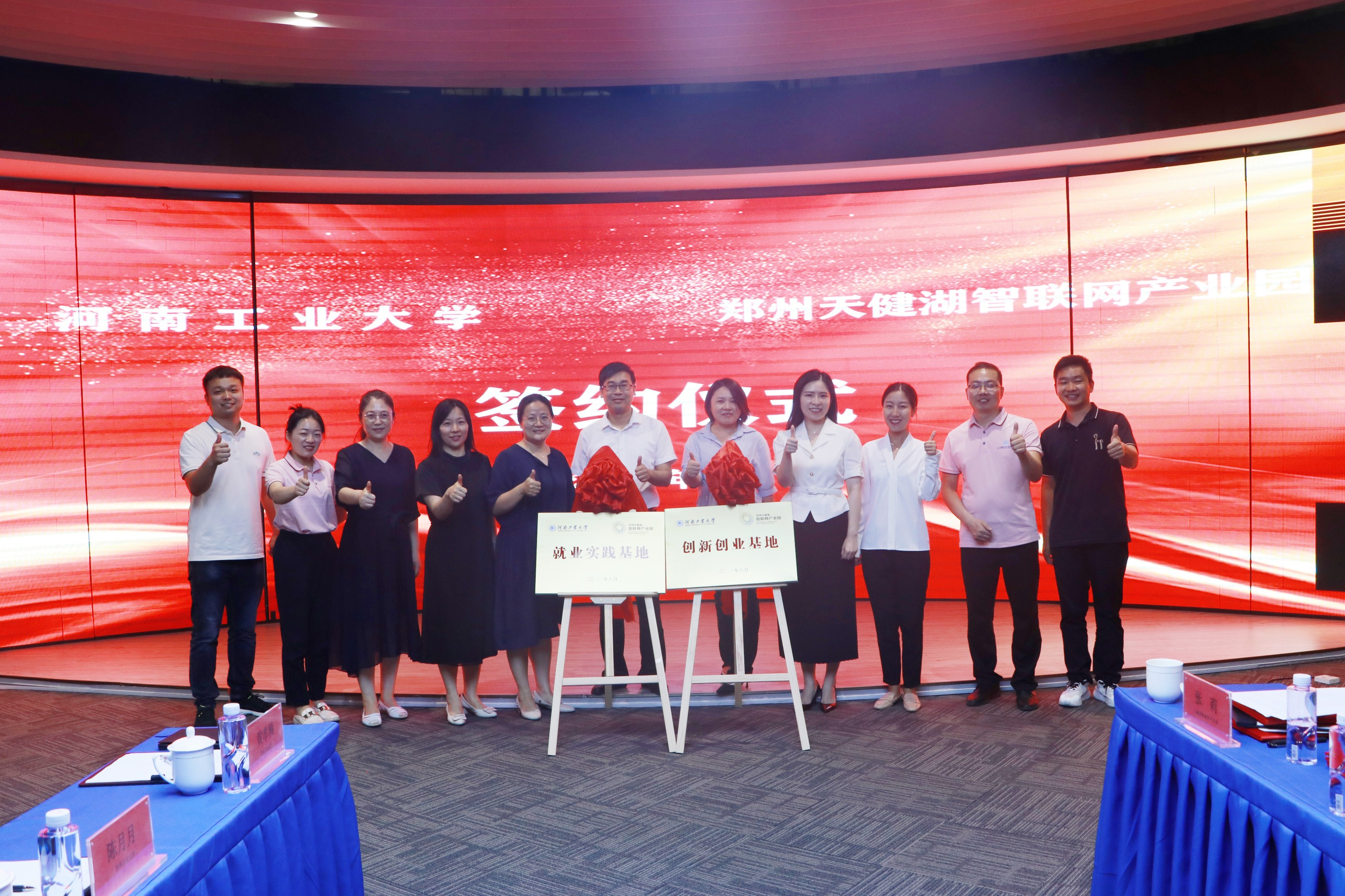 最后,双方签订了创新创业基地协议书、就业实习基地协议书,签订了创业导师聘任协议并发放聘书,进行了创新创业基地、就业实践基地揭牌仪式并合影留念。