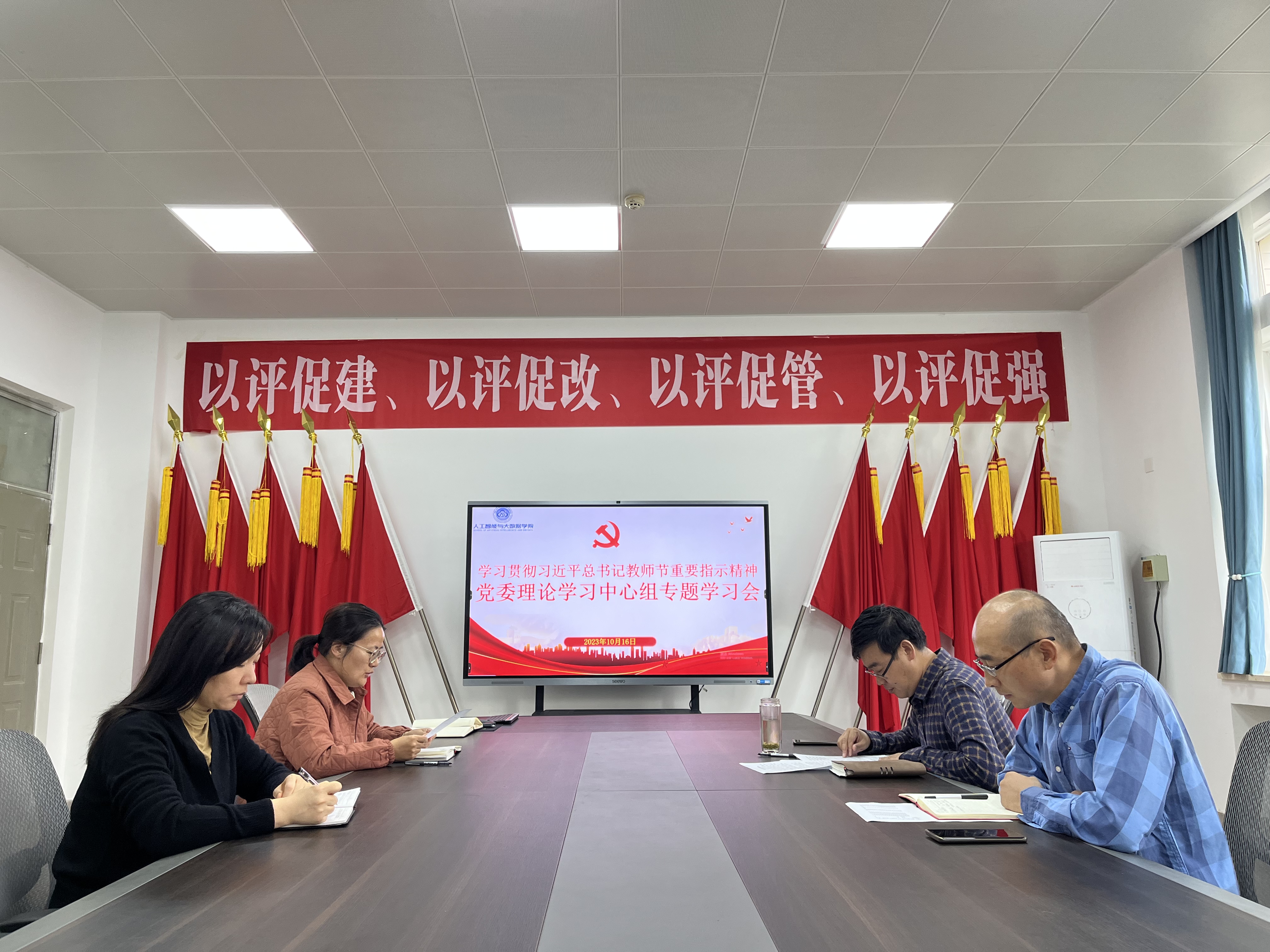 在6371会议室召开学习贯彻习近平总书记教师节重要指示精神党委理论学习中心组专题学习会。学院领导班子参加会议,学院党委书记杜鹏主持会议。