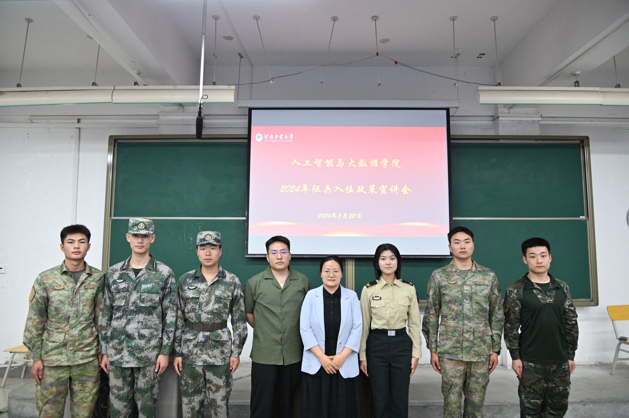 于4号楼120成功举办2024年征兵入伍政策宣讲会。学院党委副书记薛运侠、辅导员唐金杰、李龙飞、国防教育宣讲团成员、学院学生代表参加本次宣讲会。会议由李龙飞主持。