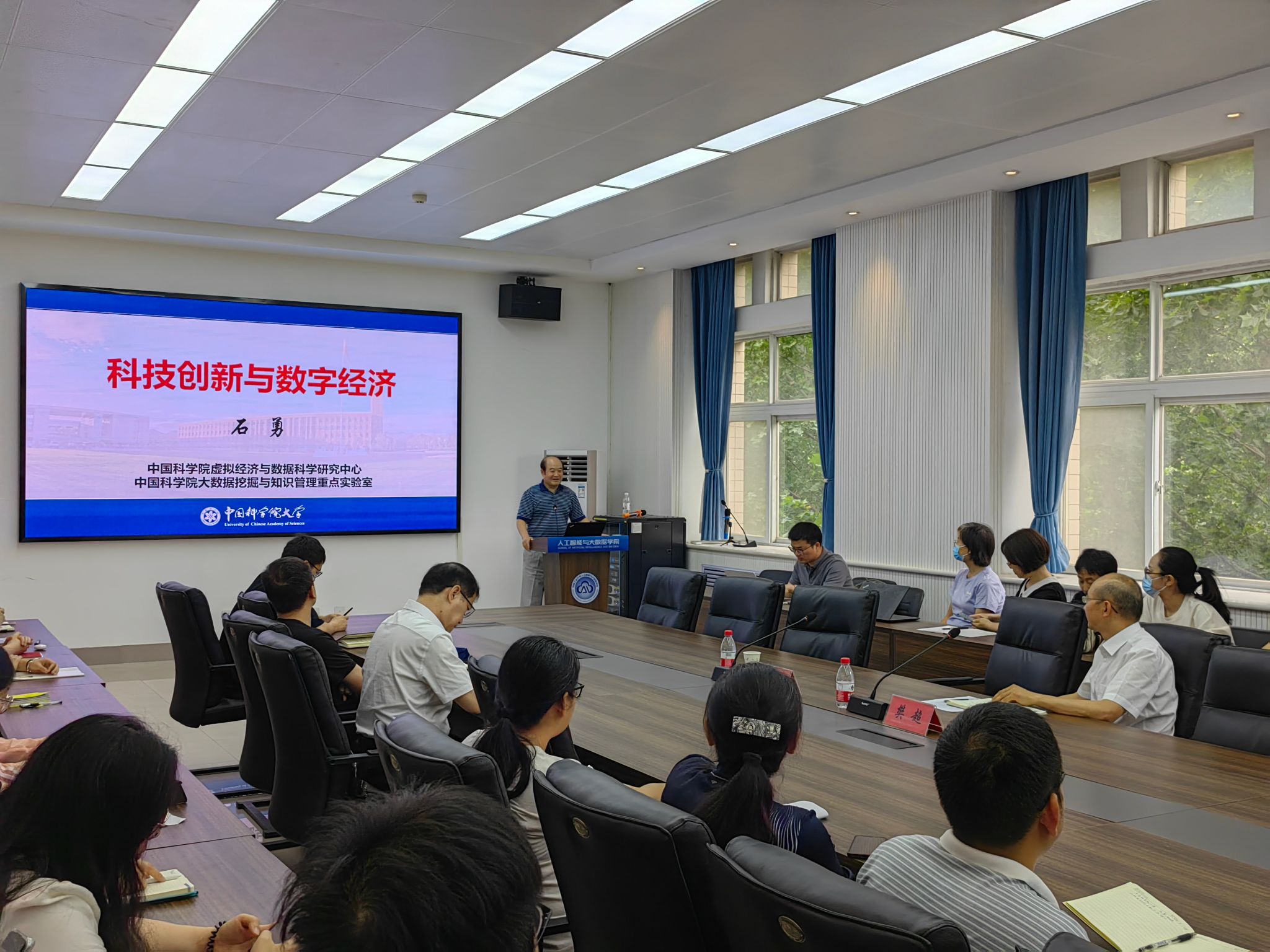 樊超首先代表学院对石勇教授的到来表示热烈欢迎,并介绍了学院建设情况及科研进展。然后,石勇教授结合自身在数字经济、大数据分析与挖掘等相关领域的研究经历和研究成果,围绕科技创新与数字经济的若干关键问题,从数字经济的概念及要素、数字经济推动社会发展、东数西算与数字经济、绿色生产力与数字经济以及关于发展数字经济的建议与思考等几个方面进行报告。报告结束后,石勇教授与在座师生就数字经济时代发展新质生产力的核心要素、大模型背景下的数字经济等主题进行了热烈的交流与深入地探讨,与会师生均表示报告非常精彩,受益匪浅。