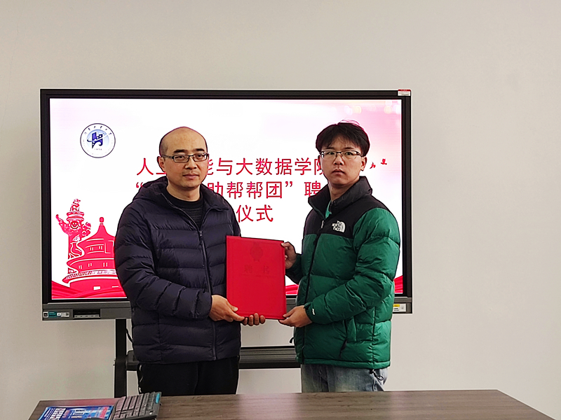 在6337会议室成功举行举行了“学长导航团”聘书颁发仪式。学院副院长樊超为推免至北京交通大学的张庆澳、推免至西北工业大学的洪瑞阳、获得国家奖学金的侯凯恒、晋级第七届“互联网+”大学生创新创业大赛国赛的郑宇四位“学长导航团”成员,颁发聘书。