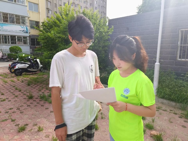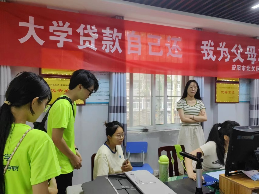 烈日炎炎,在队长的带领下,团队成员们走进河南省安阳市北关区学生资助管理中心,协助当地老师开展助学贷款工作、宣传国家资助政策。每天,队员们都耐心的向前来咨询的新生讲解办理助学贷款的条件和申请流程、指导高年级同学完成续贷业务材料的填写、向前来咨询的家长和学生详细讲解国家资助政策等。面对繁琐的工作,同学们始终保持热情服务,队员们表示“很荣幸可以参与到这样一份有温度的工作中,在志愿服务的过程中,我们更深刻领悟了‘不让一个学生因家庭经济困难而失学’的意义。”