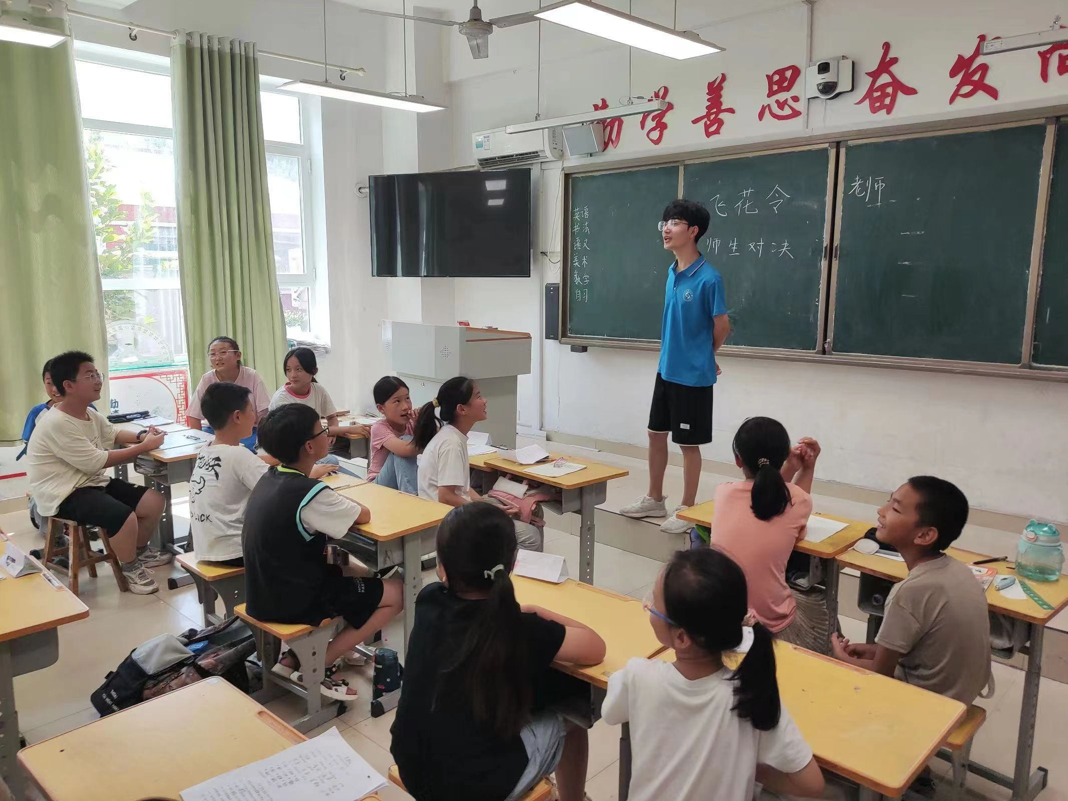 实践团队员们来到潢川县的一所学校,通过带领同学们学唱防溺水儿歌、播放青少年溺水案例视频等多种方式,用通俗易懂、生动有趣的语言,向在校的同学们传授防溺水知识,帮助他们认识到溺水的危险性和防溺水的必要性。通过生动的讲解,让防溺水安全意识牢牢扎根在同学们的心中,提高自救意识。