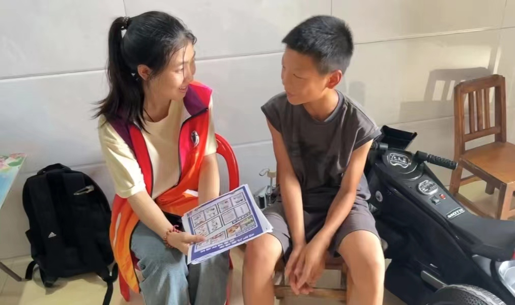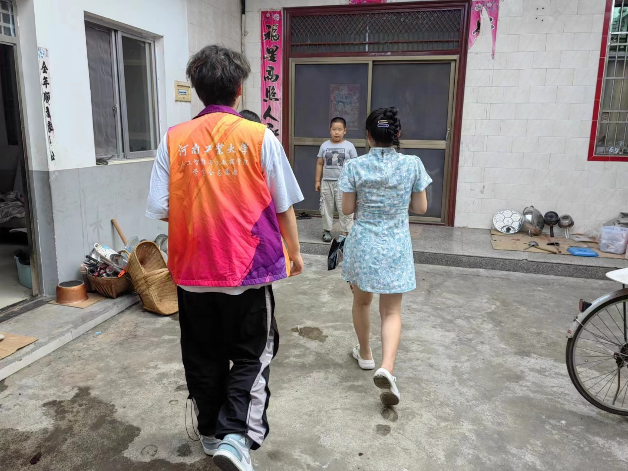 数智红青年志愿者团队赴信阳市光山县寨河镇开展暑期社会实践活动。在为期两天的家访中,师生队员们来到学生家中,与家长、学生进行了面对面深入交流,详细了解了学生的家庭状况、学生近段时间的学习情况等。志愿者对健康安全知识宣传单进行讲解,引导学生养成健康良好的生活习惯,并且教导他们,遇到困难时,要及时与家长和老师交流沟通,防止产生心理疾病,促进学生身心健康发展。