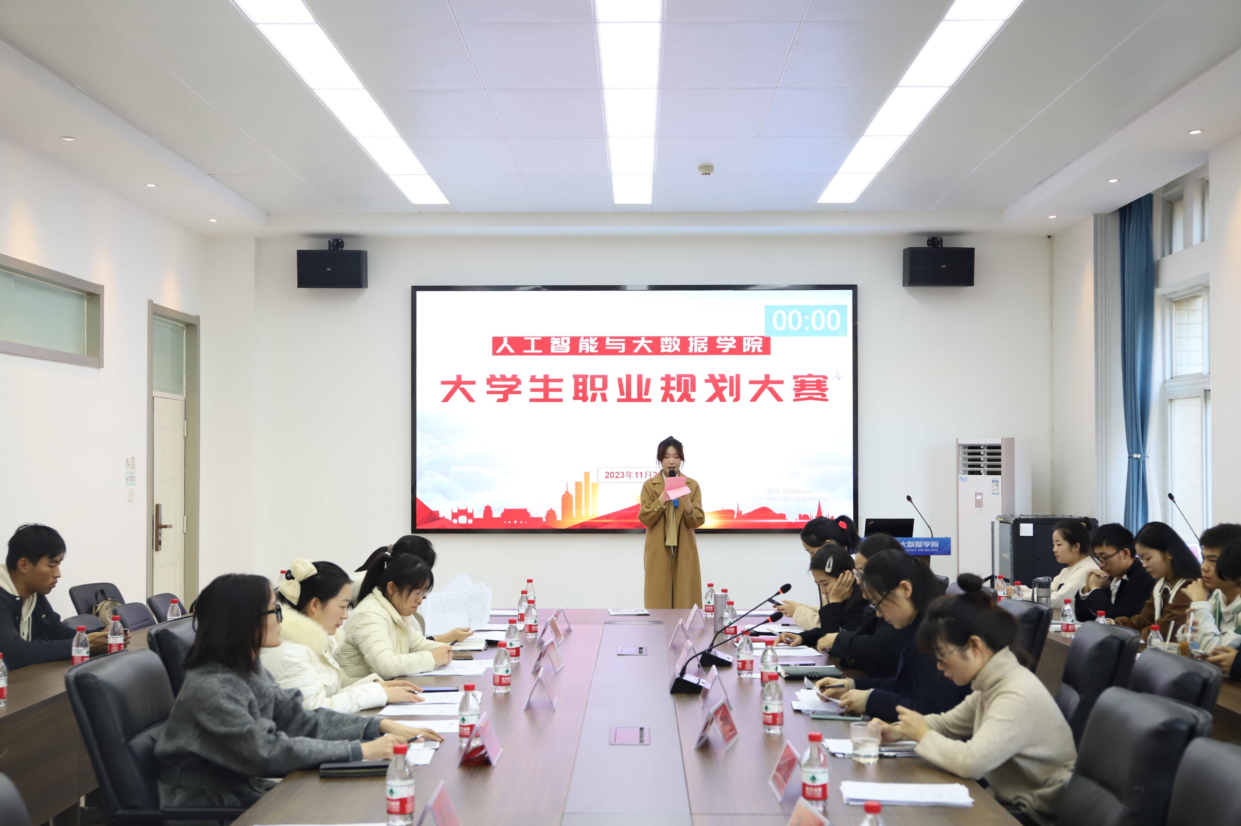 在6369会议室举办了大学生职业规划大赛决赛。学院党委副书记薛运侠、学校就业创业中心学生发展教育中心办公室主任范春霞、学工办副主任陈鸣凘、院团委副书记郑帅及全体辅导员、科大讯飞企业导师陈月月、王丛丛出席并担任本次比赛的评委。