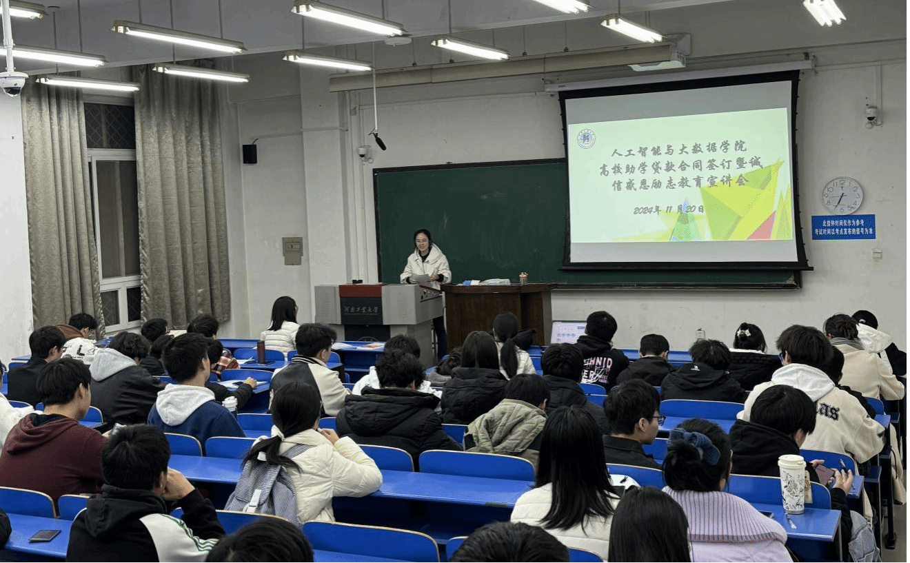 在4112室,召开了2024年高校国家助学贷款合同签订暨诚信感恩教育宣讲会。会议由学院老师齐卫红组织,学院申请高校国家助学贷款的学生、成人片
