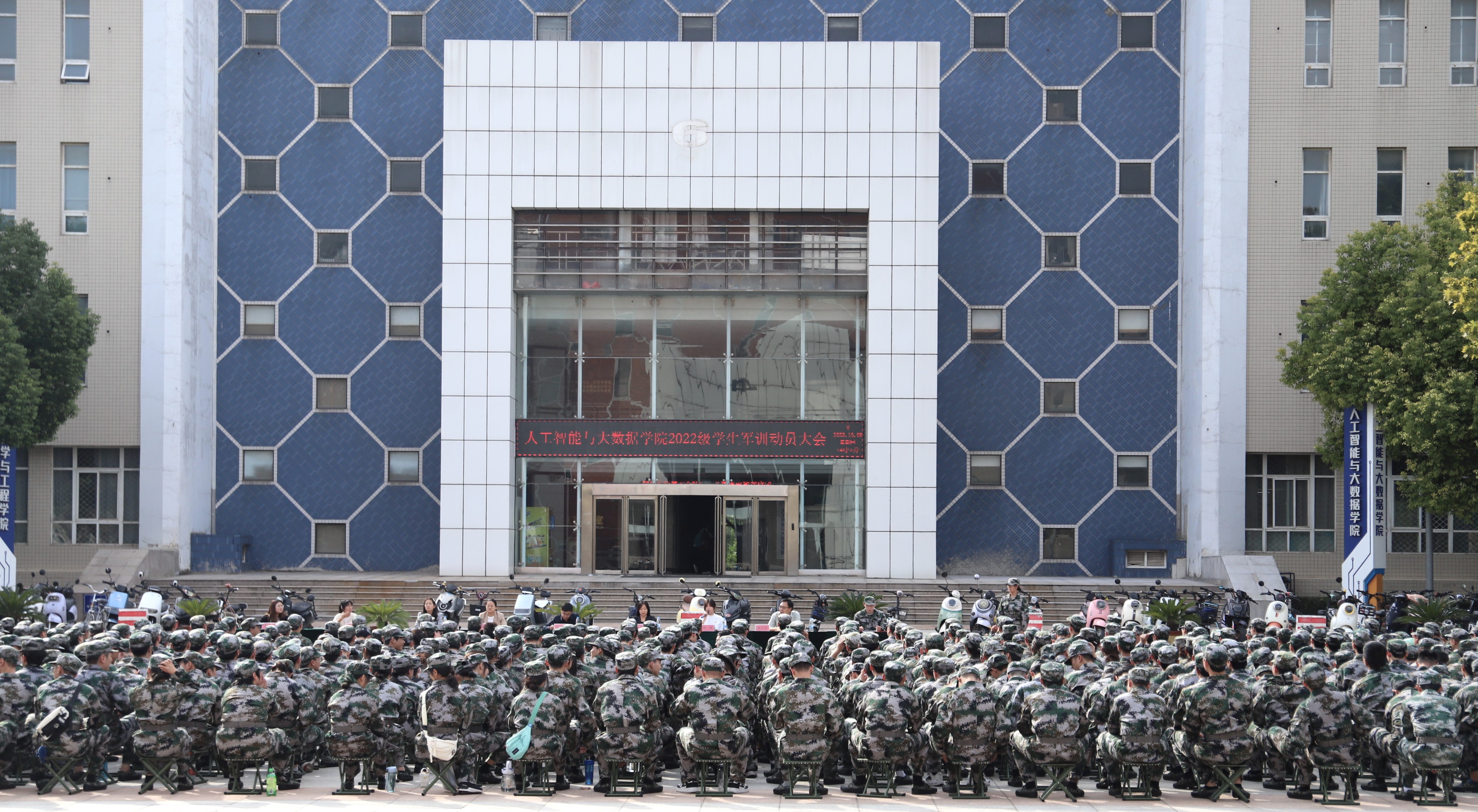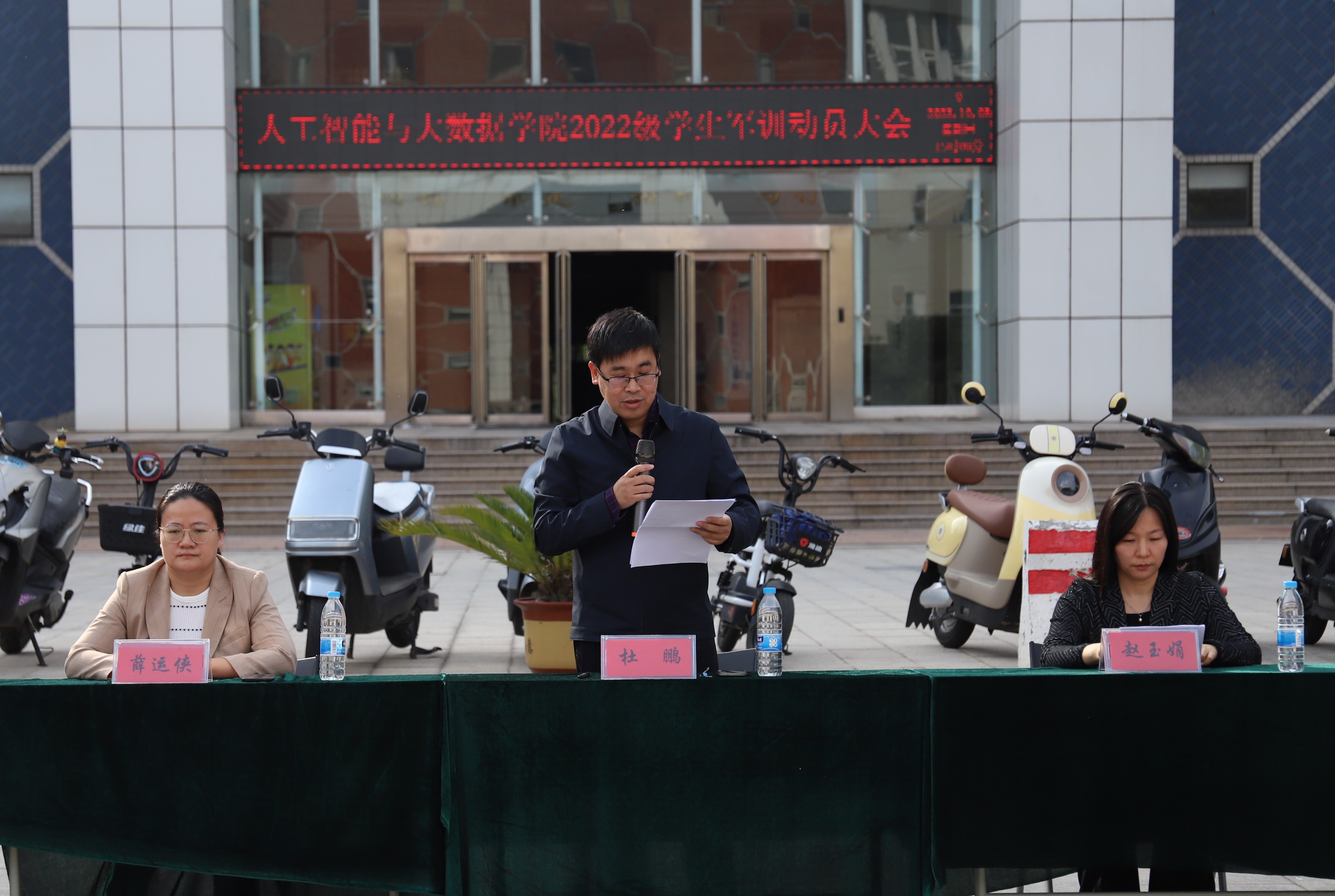 2022级本科生军训动员大会在惟学楼前隆重举行。学院党委书记杜鹏,党委副书记薛运侠,副院长赵玉娟,团委副书记郑帅,学工办副主任陈鸣凘,22级全体辅导员、军训六营全体教官与参训学生出席大会。会议由郑帅主持。