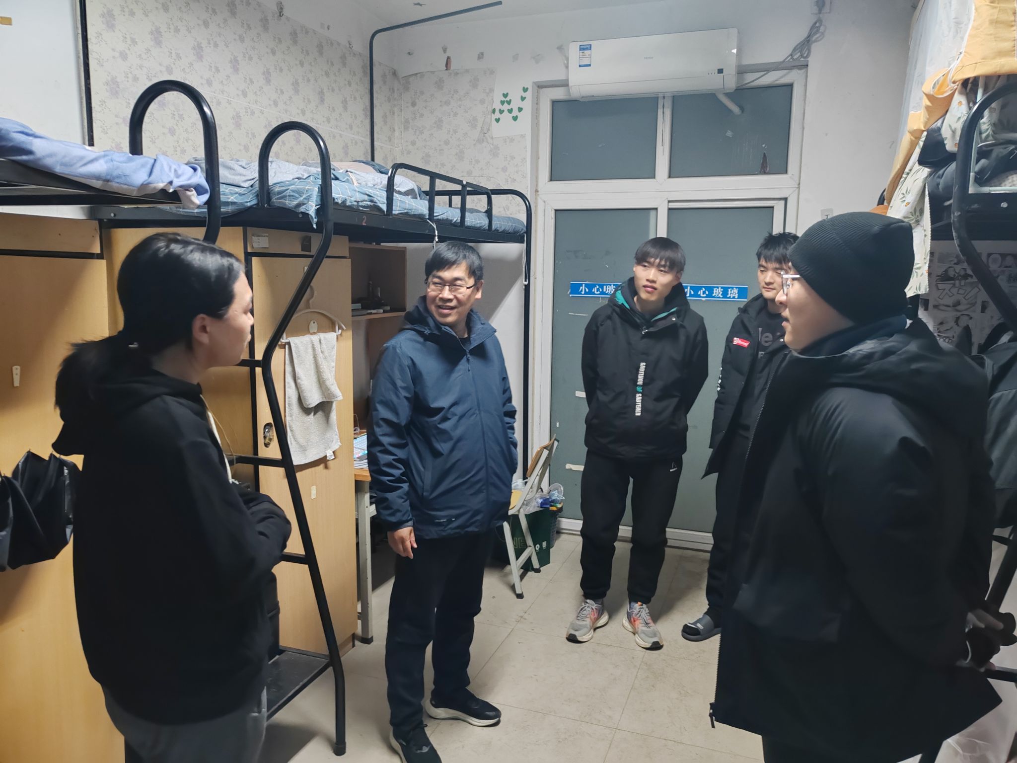 党委书记杜鹏、院长樊超、党委副书记薛运侠、副院长赵玉娟以及全体辅导员前往学院学生宿舍进行走访,在第一时间了解学生返校情况、身心健康及思想动态,为同学们送去温暖、关怀以及新学期的美好期待。