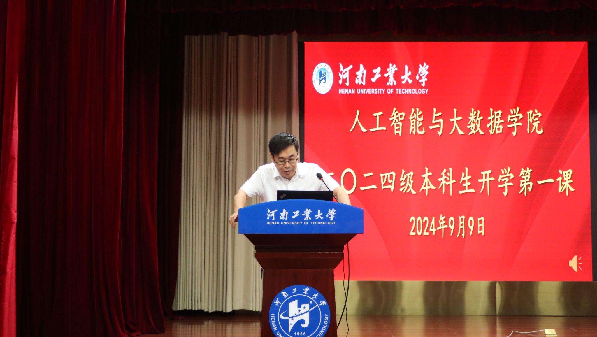 2024级新生开学典礼暨“开学第一课”在学术报告中心D303报告厅举行。学院党委书记杜鹏、院长樊超、副院长赵玉娟、副院长朱春华、各科室负责人、各系主任、全体辅导员班主任和2024级新生共同出席了仪式。典礼仪式由学院党委副书记、纪委书记赵志洋主持。
