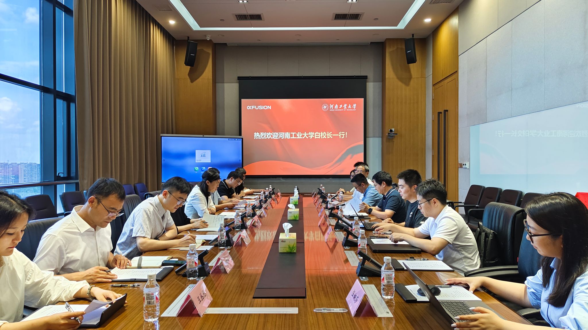 党委书记杜鹏、副院长赵玉娟、学院相关科室老师和科大讯飞人工智能产业学院相关人员等一行到超聚变数字技术有限公司开展访企拓岗洽谈。双方签订了就业实习基地协议,并为就业实践基地揭牌。